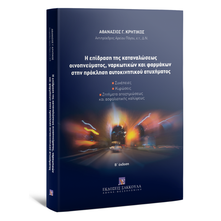 Α. Κρητικός, Η επίδραση της καταναλώσεως οινοπνεύματος, ναρκωτικών και φαρμάκων στην πρόκληση αυτοκινητικού ατυχήματος, 2η έκδ., 2021