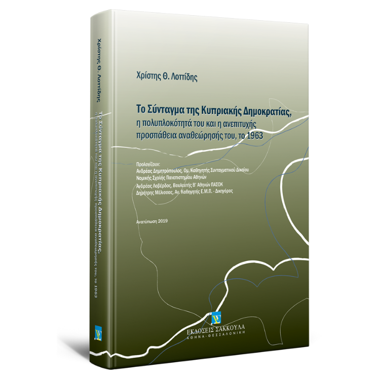 Μετά την εξάντληση της Α’ έκδοσης του έργου με τίτλο «Το Σύνταγμα της Κυπριακής Δημοκρατίας, η πολυπλοκότητα του και η ανεπιτυχής προσπάθεια αναθεώρησής του, τo 1963», του Δικηγόρου Χρίστη Θ. Λοττίδη, το βιβλίο ανατυπώνεται με προσθήκη προλόγου από τον κ. Ανδρέα Δημητρόπουλο, Ομ. Καθηγητή Συνταγματικού Δικαίου Νομικής Σχολής Πανεπιστημίου Αθηνών.