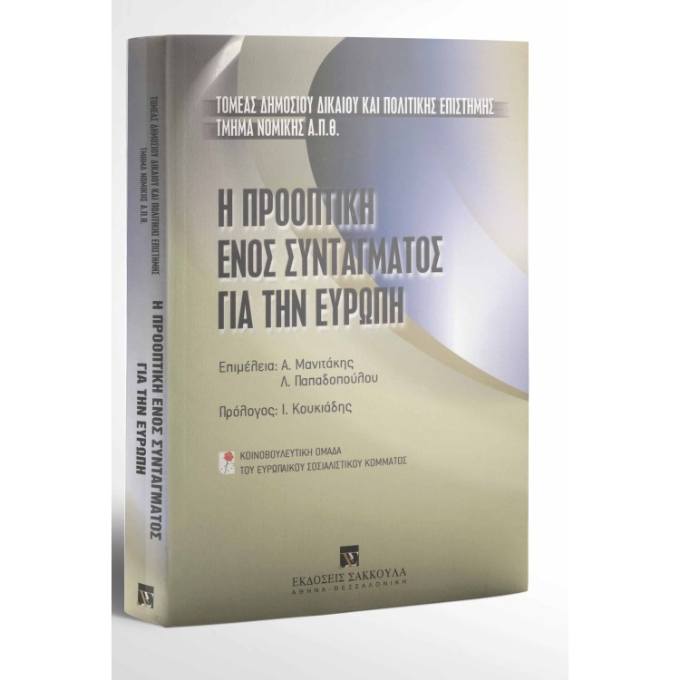 Εξαιρετικά επίκαιρη μετά την αποτυχία της Διακυβερνητικής Διάσκεψης και τα ζητήματα που ανέκυψαν για το Ευρωσύνταγμα, η έκδοση του συλλογικού τόμου «Η προοπτική ενός Συντάγματος για την Ευρώπη», ο οποίος κυκλοφόρησε πρόσφατα από τις Εκδόσεις Σάκκουλα Α.Ε. (Αθήνα – Θεσσαλονίκη). Ο επιμελημένος τόμος, που εκδόθηκε από τον Τομέα Δημοσίου Δικαίου και Πολιτικής Επιστήμης και προλογίζει ο Ευρωβουλευτής και Καθηγητής της Νομικής κ. Ιωάννης Κουκιάδης, περιλαμβάνει σειρά μελετών γραμμένων από έγκριτους επιστήμονες αλλά και πολιτικούς, οι οποίες καλύπτουν όλο τα φάσμα των ζητημάτων που εγείρονται με τη σχεδιαζόμενη υιοθέτηση ενός ευρωπαϊκού Συντάγματος. Την έκδοση του βιβλίου επιμελήθηκαν ο Καθηγητής Α.Π.Θ. κ. Αντώνης Μανιτάκης και η επιστημονική συνεργάτιδα κ. Λίνα Παπαδοπούλου. Το βιβλίο είναι αφιερωμένο στον Καθηγητή και Επίτιμο Διδάκτορα του Νομικού Τμήματος του Α.Π.Θ. κ. Δημήτρη Θ. Τσάτσο.
