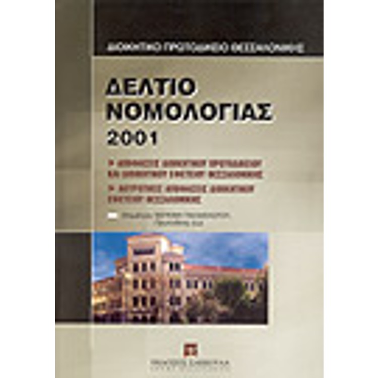 Μετά τη θερμή υποδοχή που έτυχε το Δελτίο Νομολογίας 2000, το Διοικητικό Πρωτοδικείο Θεσσαλονίκης και οι Εκδόσεις Σάκκουλα προχώρησαν στην έκδοση του νέου Δελτίου Νοολογίας 2001.