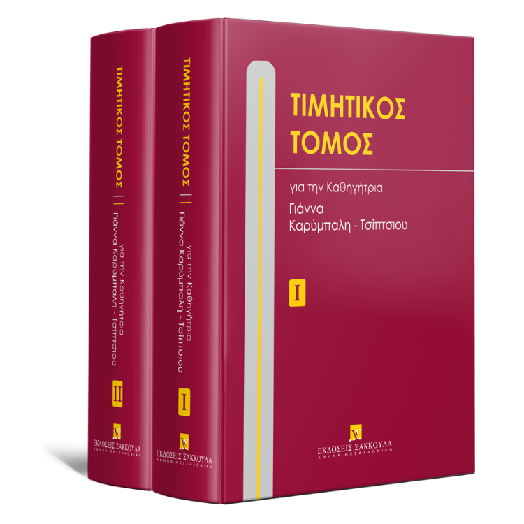 Το παρόν δίτομο έργο στεγάζει ενενήντα δύο μελέτες διακεκριμένων νομικών αφιερωμένες στην ομότιμη καθηγήτρια Γιάννα Καρύμπαλη-Τσίπτσιου.