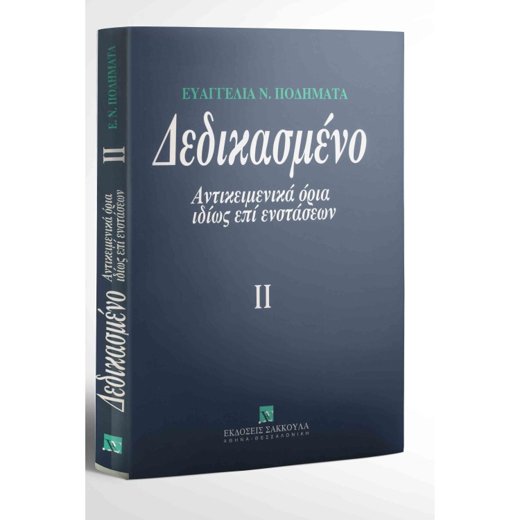 Το δεύτερο αυτό μέρος της μελέτης για τα αντικειμενικά όρια του δεδικασμέ- νου αποτελεί την οργανική συνέχεια του πρώτου μέρους (Δεδικασμένο Ι, 1995) και επικεντρώνεται στην ερμηνεία του άρθρου 330 ΚΠολΔ. Το αντικείμενο του δεδικασμένου κατά τη διάταξη αυτή ερευνάται, διαδοχικά, στις περιπτώσεις που προβάλλεται κάθε επιμέρους είδος ενστάσεως του ουσιαστικού δικαίου: καταχρηστική ένσταση, γνήσια αυτοτελής ένσταση, γνήσια μη αυτοτελής ένσταση και εξετάζεται κάθε φορά τόσο υπό την εκδοχή ότι η ένσταση γίνεται επί της ουσίας δεκτή όσο και υπό την εκδοχή ότι απορρίπτεται είτε κατ' ουσία είτε για τυπικούς λόγους.