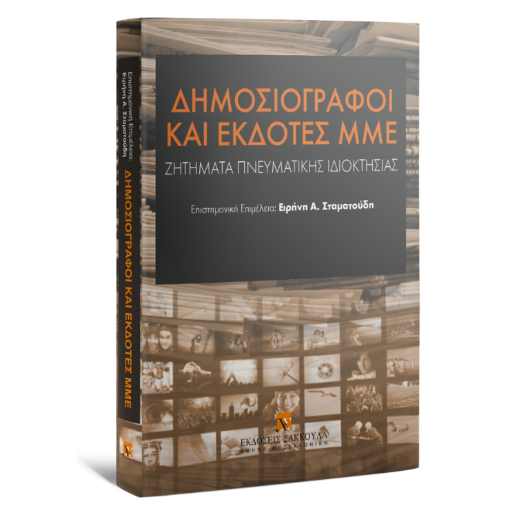 Για πρώτη φορά σε ένα συλλογικό έργο διερευνώνται ζητήματα πνευματικής ιδιοκτησίας τα οποία σχετίζονται άμεσα με τα μέσα μαζικής ενημέρωσης και συγκεκριμένα με τα δικαιώματα και τις υποχρεώσεις των δημοσιογράφων και των εκδοτών. Στο ίδιο έργο περιλαμβάνονται επίσης ζητήματα συλλογικής διαχείρισης δικαιωμάτων στην ψηφιακή εποχή καθώς και ζητήματα προστασίας φωτογράφων και σύγκρουσης δικαιώματος στην προσωπικότητα και δικαιώματος στη φωτογραφία. Ο τομέας των ΜΜΕ γνωρίζει ιδιαίτερα χαρακτηριστικά τα οποία προκύπτουν από τις ανάγκες της ενημέρωσης, τα συναλλακτικά ήθη, την έλλειψη σε πολλές περιπτώσεις συμβάσεων μεταξύ των εμπλεκόμενων μερών καθώς και την εξέλιξη της τεχνολογίας και του διαδικτύου.