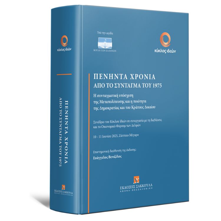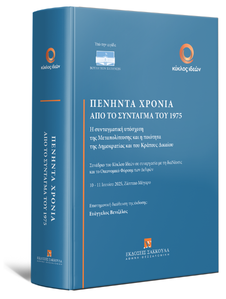 Στο έργο αυτό συγκεντρώνονται τα πρακτικά του επιστημονικού Συνεδρίου με θέμα «Πενήντα χρόνια από το Σύνταγμα του 1975», το οποίο διεξήχθη στο Ζάππειο Μέγαρο στις 10 και 11 Ιουνίου 2025, ακριβώς πενήντα χρόνια μετά τη θέση σε ισχύ του Συντάγματος του 1975, και συνδιοργανώθηκε από τον Κύκλο Ιδεών, υπό την αιγίδα της Βουλής, σε συνεργασία με τη διαΝέοσις και το Οικονομικό Φόρουμ των Δελφών.