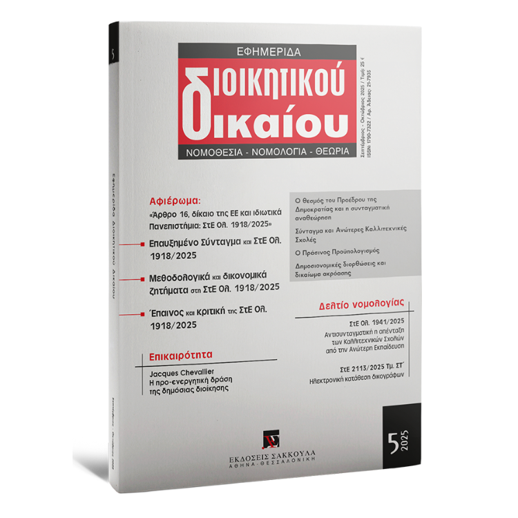 Πελώριας σηµασίας θέµατα για την ερµηνεία του Συντάγµατος, την ερµηνεία του δικαίου της ΕΕ, και τη σχέση µεταξύ Συντάγµατος και δικαίου ΕΕ, έθεσε η απόφαση 1918/2025 της Ολοµέλειας του ΣτΕ για την εγκατάσταση στην Ελλάδα αλλοδαπών πανεπιστηµιακών ιδρυµάτων. Αυτονόητο είναι λοιπόν το ενδιαφέρον της ΕφηµΔΔ για την ιστορική αυτή απόφαση (Αφιέρωµα, σ. 533), µε συµβολές των Ευ. Βενιζέλου, Ν. Παπασπύρου και Χ. Τσιλιώτη. Στην ευρύτερη προβληµατική της συνταγµατικής οργάνωσης του εκπαιδευτικού συστήµατος εντάσσονται και οι αποφάσεις 1941 και 1942/2025 της Ολοµέλειας του Συµβουλίου της Επικρατείας για τις Καλλιτεχνικές Σχολές (Μελέτες-Απόψεις, σ. 588).
