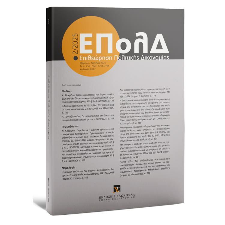Ι. Δεληκωστόπουλος, Το νέο άρθρο 237 ΚΠολΔ µετά τις τροποποιήσεις των ν. 5221/2025 και 5264/2025, σ. 140