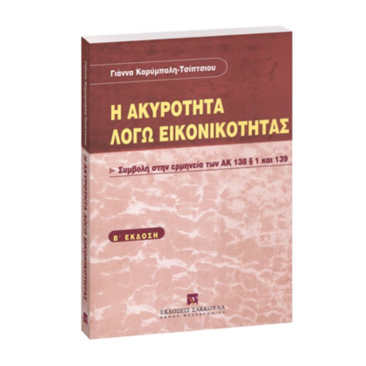 Η β΄ έκδοση του παρόντος βιβλίου αφιερώνεται στην ερμηνεία των άρθρων 138 § 1 και 139 του Αστικού Κώδικα, λαμβάνοντας βέβαια υπόψη τη νεότερη βιβλιογραφία και την πλούσια σε ζητήματα εικονικότητας πρόσφατη νομολογία των δικαστηρίων μας.