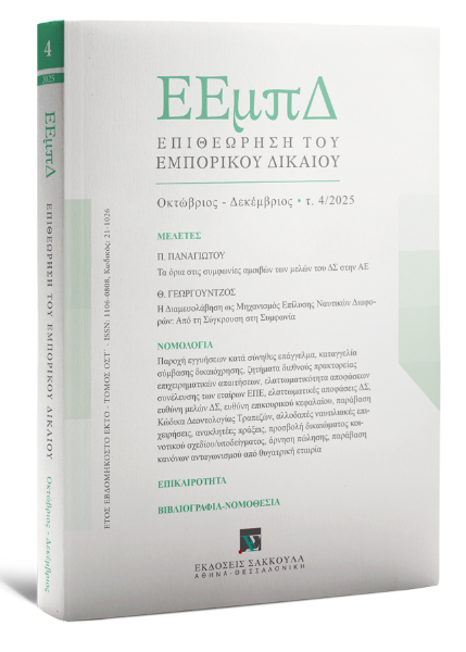 Η έγκυρη περιοδική έκδοση για όλα τα ζητήματα Εμπορικού Δικαίου