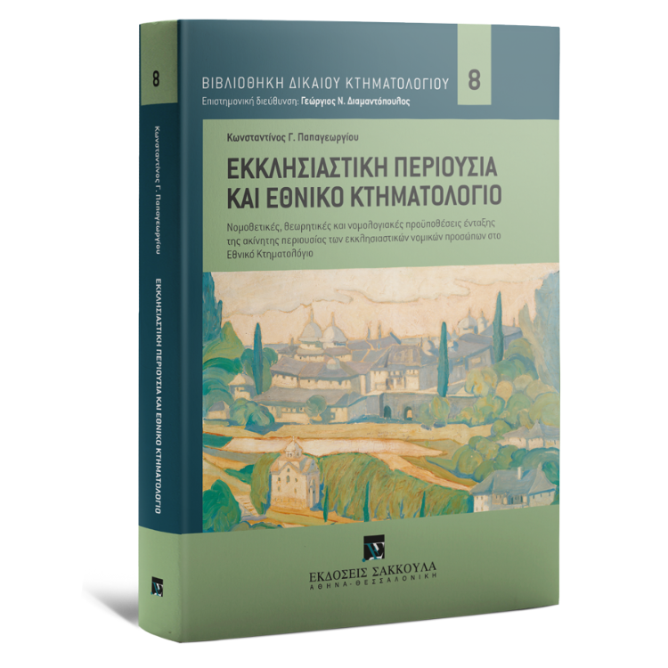Το νομικό καθεστώς που διέπει σήμερα την εκκλησιαστική περιουσία, συγκροτείται από ένα σύνθετο πλέγμα διατάξεων δικαίου του ιδιωτικού, του δημόσιου κυρίως όμως του εκκλησιαστικού δικαίου. Σκοπός των ανωτέρω κανόνων δικαίου είναι η αναγνώριση και προστασία των εμπράγματων δικαιωμάτων των εκκλησιαστικών νομικών προσώπων, στο πλαίσιο του ισχύοντος Συντάγματος αλλά και της ΕΣΔΑ. Η έναρξη όμως της ισχύος της κτηματολογικής νομοθεσίας και η προϊούσα εφαρμογή του θεσμού του Εθνικού Κτηματολογίου (N. 2308/1995, «Κτηματογράφηση για τη δημιουργία Εθνικού Κτηματολογίου – Διαδικασία έως τις πρώτες εγγραφές», Ν. 2664/1998, «Εθνικό Κτηματολόγιο και άλλες διατάξεις», όπως ισχύουν με τις τροποποιήσεις και του Ν. 4409/2016) σε διάφορες περιοχές της χώρας, είναι γεγονός ότι δοκιμάζει τις αντοχές του υπάρχοντος νομικού status της εκκλησιαστικής περιουσίας, εν όψει των εξώδικων ή δικαστικών διαδικασιών που προβλέπονται για την αποκάθαρση και κατοχύρωση των συναφών εμπράγματων δικαιωμάτων. Σκοπός του παρόντος έργου είναι η διερεύνηση των νομοθετικών, θεωρητικών και νομολογιακών προϋποθέσεων ένταξης της περιουσίας των χιλιάδων εκκλησιαστικών νομικών προσώπων όλης της ελληνικής επικράτειας στον ραγδαία εξελισσόμενο θεσμό του Εθνικού Κτηματολογίου.