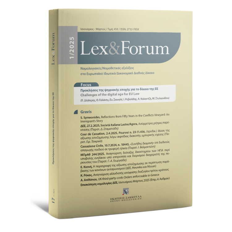 O περιοδικός νομικός τύπος στην Ελλάδα δεν έχει καλύψει μέχρι σήμερα τα ζητήματα του ευρωπαϊκού ιδιωτικού και δικονομικού διεθνούς δικαίου με κάποιο εξειδικευμένο περιοδικό, αρκούμενος ενίοτε σε ορισμένες επιμέρους στήλες σε νομικά περιοδικά ποικίλης ύλης. Το Lex&Forum επιδιώκει τη νομολογιακή και νομοθετική παρακολούθηση της παραγωγής, της ερμηνείας και της εφαρμογής του ευρωπαϊκού ιδιωτικού και δικονομικού διεθνούς δικαίου, καλύπτοντας ένα πρακτικό έλλειμμα στον χώρο των εγχώριων περιοδικών νομικών εκδόσεων με την ολοκληρωτική αφιέρωσή του στο συγκεκριμένο αντικείμενο.