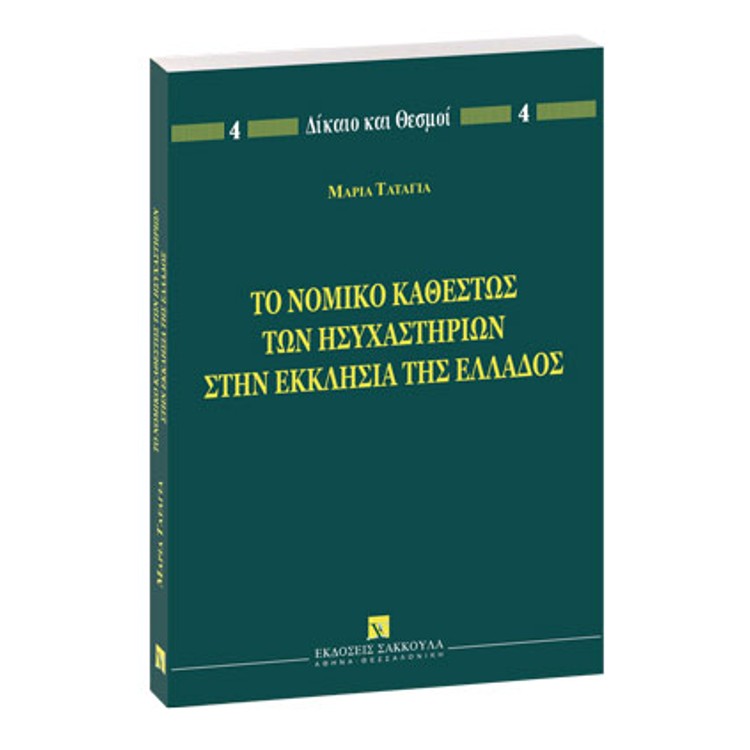 Το βιβλίο της Μαρίας Τατάγια, δρ Νομικής παρουσιάζει τις θεσμικές συντεταγμένες ενός ιδιότυπου κοινωνικού φαινομένου, του μοναχισμού. Τα Ησυχαστήρια εμφανίζονται ως δικαιικός θεσμός τα τελευταία χρόνια, παρόλα αυτά, η μελέτη ενδιαφέρει όλες τις εκφάνσεις του οργανωμένου μοναχικού βίου, διότι, όπως προκύπτει από την εν λόγω έρευνα, το νομικό καθεστώς των Ησυχαστηρίων ταυτίζεται εν πολλοίς με το αντίστοιχο καθεστώς των μονών Δημοσίου Δικαίου. Το υλικό του βιβλίου έχει ταξινομηθεί σε τέσσερα κεφάλαια. Στο πρώτο κεφάλαιο αναπτύσσεται γενικά ο θεσμός των Ησυχαστηρίων, τα βασικά χαρακτηριστικά τους και η ιδιάζουσα νομική προσωπικότητά τους.