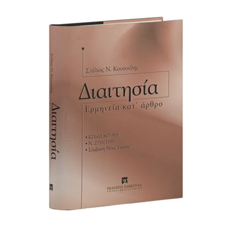 Κυκλοφορεί από τις «Εκδόσεις Σάκκουλα» Α.Ε. (Αθήνα – Θεσσαλονίκη) το έργο του Επίκουρου Καθηγητή Πολιτικής Δικονομίας στο Πανεπιστήμιο Αθηνών, κυρίου Στέλιο Κουσούλη, με τίτλο «Διαιτησία – Ερμηνεία κατ’ άρθρο».