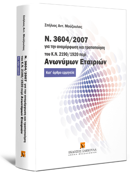 Σ. Μούζουλας, Ν. 3604/2007 για την αναμόρφωση και τροποποίηση του Κ.Ν. 2190/1920 περί ανωνύμων εταιριών, 2008