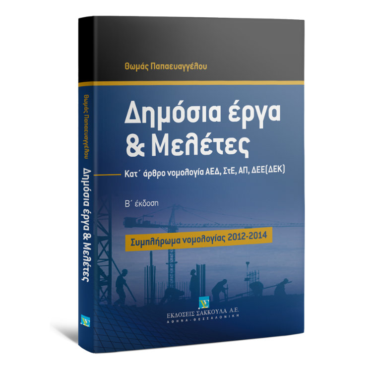 Το παρόν αποτελεί συμπλήρωμα του βιβλίου «Δημόσια έργα & Μελέτες», Β΄ έκδοση. Περιλαμβάνει τη νομολογία των ανώτατων δικαστηρίων (ΣτΕ και ΑΠ, καθώς και του ΔΕΕ) όπως αυτή διαμορφώθηκε κατά τα έτη 2012, 2013 και 2014, μετά την έκδοση του ανωτέρω βιβλίου.