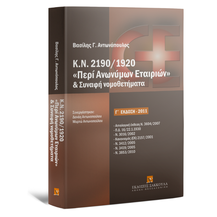 Β. Αντωνόπουλος, Κ.Ν. 2190/1920 «Περί Ανωνύμων Εταιριών & συναφή νομοθετήματα», 3η έκδ., 2011