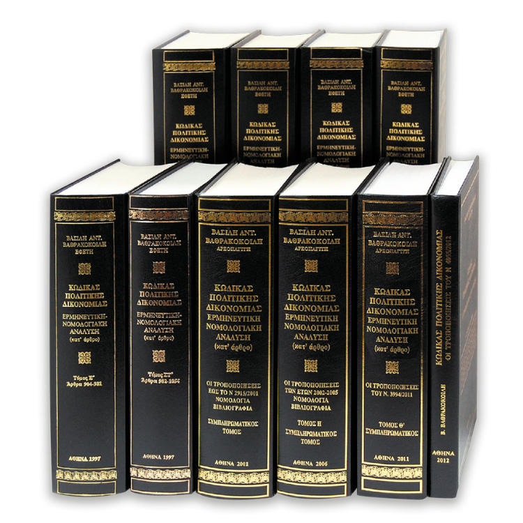 Η 9τομη Ερμηνεία ΚΠολΔ του Β. Βαθρακοκοίλη μαζί με το Συμπλήρωμα (Ν. 4055/2012).