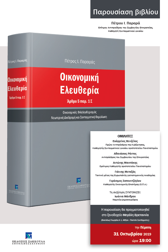 Παρουσίαση βιβλίου: Οικονομική Ελευθερία Άρθρο 5 παρ . 1 Σ