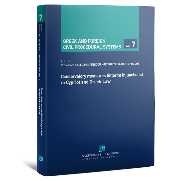 Comparison among different procedural systems prevents the isolation of legal orders and leads to the improvement of institutions. Conservatory Measures (Interim Injunctions) in Cypriot and Greek Law are in the center of this seventh volume.