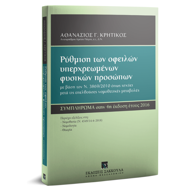 Α. Κρητικός, Pύθμιση των οφειλών υπερχρεωμένων φυσικών προσώπων - Συμπλήρωμα, 2018