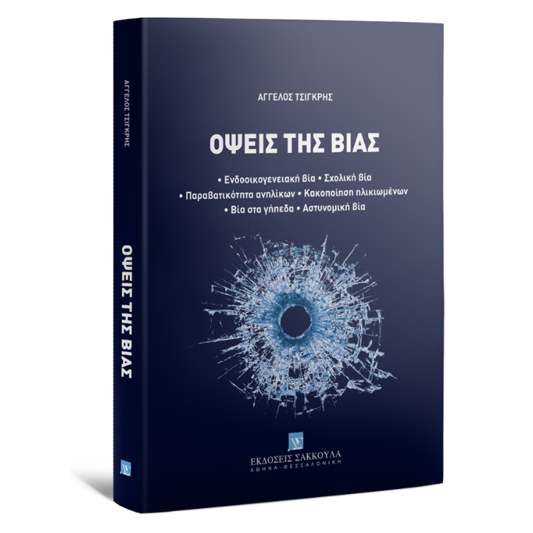 Στην παρούσα μονογραφία παρουσιάζονται συστηματικά όψεις της βίας που στις ημέρες μας παρουσιάζουν ιδιαίτερη έξαρση στην Ελλάδα και τον κόσμο, και ταυτόχρονα τροφοδοτούν τον δημόσιο λόγο (ενδοοικογενειακή βία, σχολική βία, παραβατικότητα ανηλίκων και βία στα γήπεδα), καθώς και κάποιες παραγνωρισμένες –από την έρευνα και τη δημόσια συζήτηση– όψεις της (βία κατά των ηλικιωμένων και αστυνομική βία).