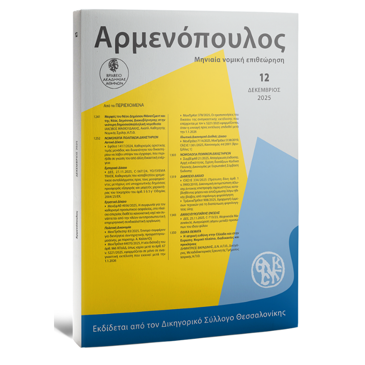 1374 Ι. ΑΡΘΡΑ – ΝΟΜΙΚΑ ΖΗΤΗΜΑΤΑ – ΜΕΛΕΤΕΣ – EΙΔΙΚΑ ΘΕΜΑΤΑ