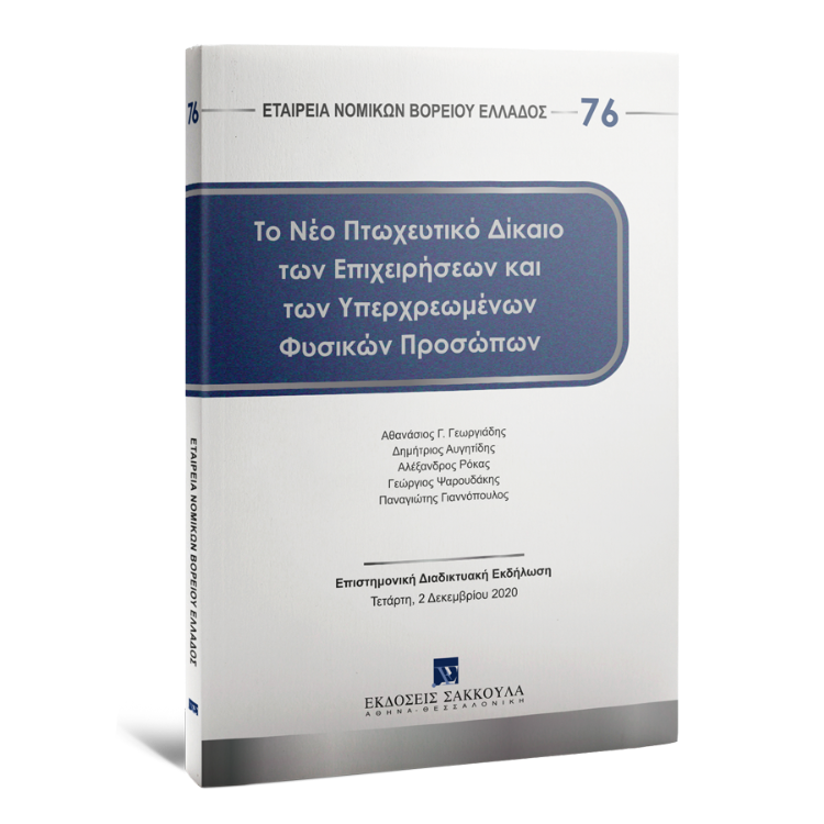 Το παρόν έργο κυκλοφορεί με αφορμή την πρώτη διαδικτυακή επιστημονική εκδήλωση της Εταιρείας Νομικών Βορείου Ελλάδος, με θέμα «Το νέο πτωχευτικό δίκαιο των επιχειρήσεων και των υπερχρεωμένων φυσικών προσώπων». Ειδικότερα, αναλύονται δύο ιδιαίτερα σημαντικά νομοθετήματα, ο νόμος 4738/2020 με τίτλο «Ρύθμιση οφειλών και παροχή δεύτερης ευκαιρίας και άλλες διατάξεις» και ο νόμος 4745/2020 με τίτλο «Ρυθμίσεις για την επιτάχυνση της εκδίκασης εκκρεμών υποθέσεων του ν. 3869/2010 κ.λπ.».