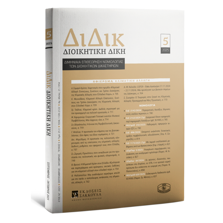 If you wish to subscribe to the journal 'Διοικητική Δίκη', please contact one of our stores (Athens: +30 210 33 87 500, Thessaloniki: +30 2310 535 381) or send an e-mail to info@sakkoulas.gr