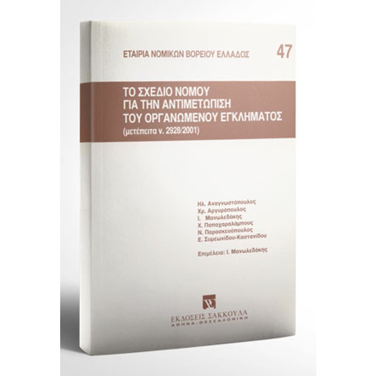 Ε. Συμεωνίδου-Καστανίδου/Ν. Παρασκευόπουλος/Ι. Μανωλεδάκης..., Το σχέδιο νόμου για την αντιμετώπιση του οργανωμένου εγκλήματος (μετέπειτα Ν. 2928/2001), 2002