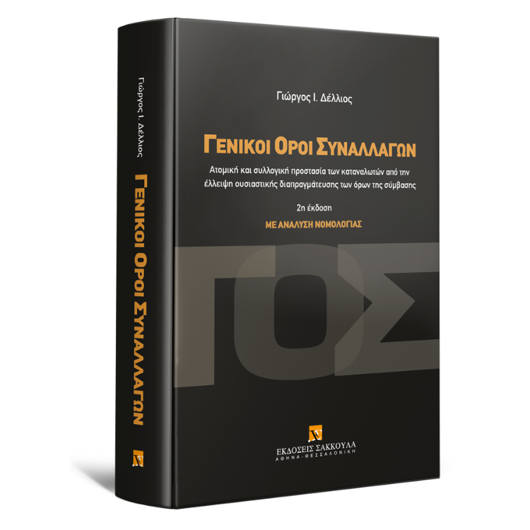 Στα είκοσι σχεδόν χρόνια εφαρμογής του νόμου για την προστασία των καταναλωτών υπήρξε μια εκρηκτική αύξηση της συναφούς νομολογίας και βιβλιογραφίας, κυρίως σε σχέση με τον δικαστικό έλεγχο των Γενικών Όρων Συναλλαγών. Στο ζήτημα αυτό εστιάζει το έργο, με διεξοδική ανάπτυξή του τόσο σε θεωρητικό όσο -και ιδίως- σε πρακτικό επίπεδο. Με εκτενή νομολογιακά παραδείγματα, όπου επισημαίνονται τα αποφασιστικά κριτήρια του δικανικού συλλογισμού, αυτά που κυριαρχούν στη μείζονα πρόταση και καθορίζουν την έκβαση της υπόθεσης κάθε φορά, επιχειρείται να καταστεί περισσότερο προβλέψιμη και ελέγξιμη η δικαστική κρίση και να περιβληθεί η ερμηνεία των σχετικών διατάξεων με μεγαλύτερη ασφάλεια δικαίου.