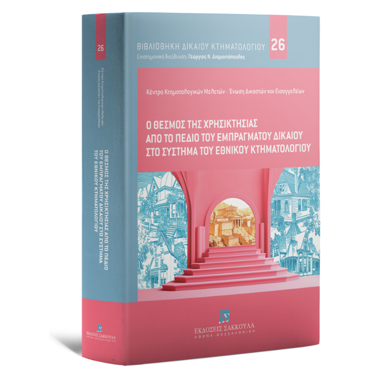 27 εμβριθείς συμβολές δικαστών, καθηγητών Νομικών Σχολών, δικηγόρων, συμβολαιογράφων και προϊσταμένων κτηματολογικών γραφείων συναρθρώνουν τον παρόντα 26ο τόμο της Βιβλιοθήκης Κτηματολογικού Δικαίου, με θέμα: «Ο θεσμός της χρησικτησίας από το πεδίο του Εμπράγματου Δικαίου στο σύστημα του Εθνικού Κτηματολογίου». Καλύπτουν ένα ευρύτατο φάσμα κρίσιμων ζητημάτων του θεσμού της χρησικτησίας, συνθέτοντας πτυχές του σύγχρονου αστικού (ουσιαστικού και δικονομικού) δικαίου με το κτηματολογικό δίκαιο.