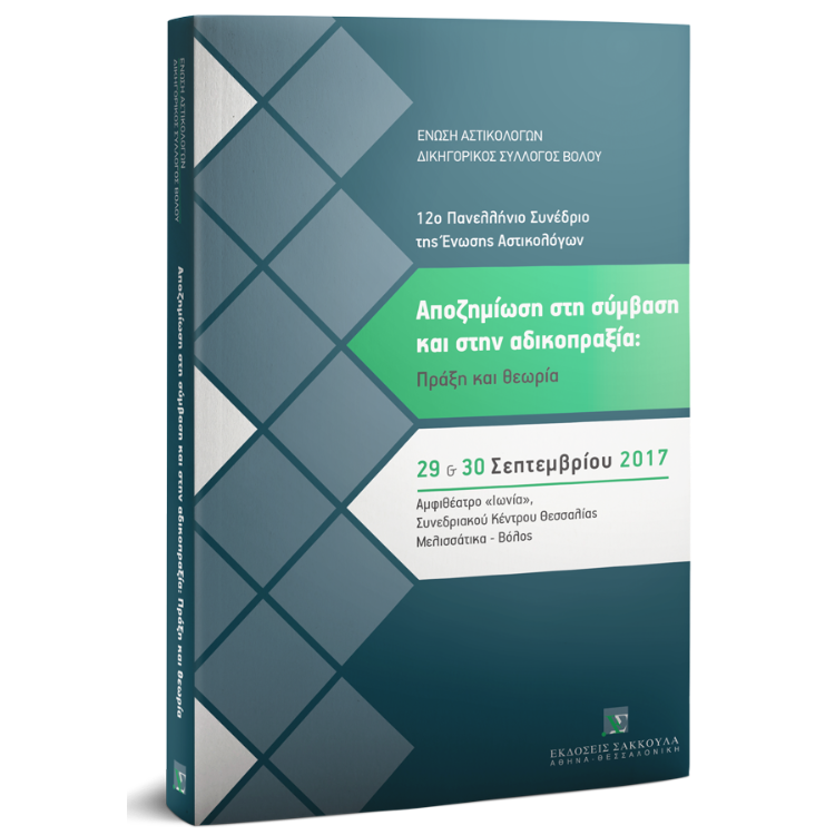Στον ανά χείρας τόμο δημοσιεύονται τα πρακτικά του 12oυ Πανελλήνιου Συνεδρίου της Ένωσης Αστικολόγων με θέμα: «Αποζημίωση στη σύμβαση και στην αδικοπραξία: Πράξη και θεωρία», οι εργασίες του οποίου διεξήχθησαν στον Βόλο 29 και 30 Σεπτεμβρίου 2017 στο Αμφιθέατρο «ΙΩΝΙΑ» στο συνεδριακό κέντρο Θεσσαλίας.