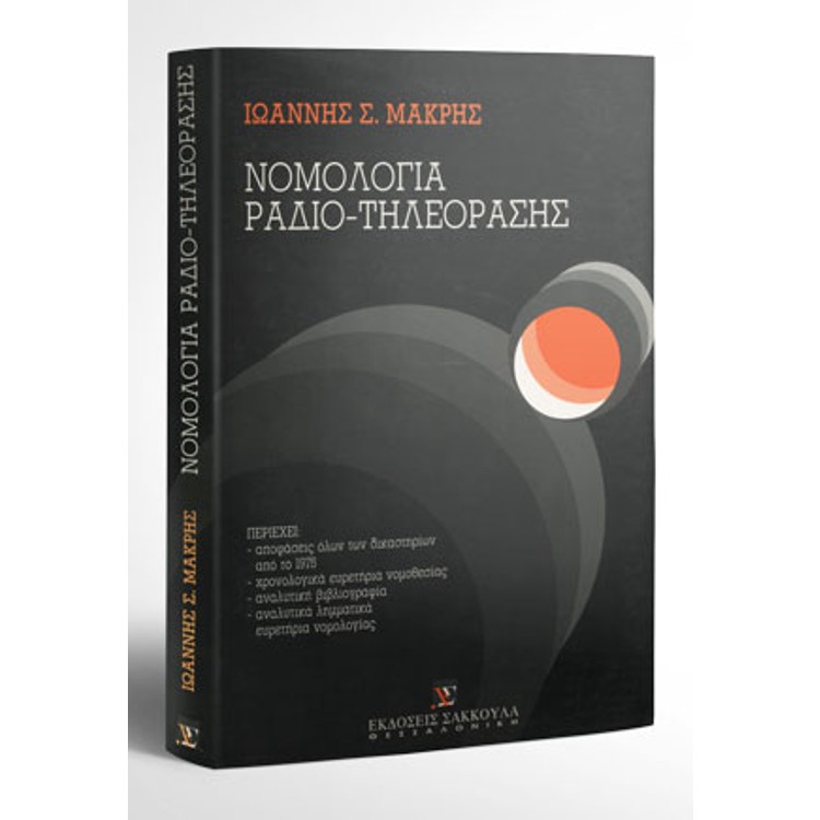Ι. Μακρής, Νομολογία ραδιο-τηλεόρασης, 1996 Με αφορμή τη συμπλήρωση μιας εικοσαετίας ουσιαστικής απασχόλησης των δικαστηρίων τόσο της Ελλάδος όσο και της Ευρώπης με το αντικείμενο της ραδιοτηλεόρασης, εκδίδεται η εν λόγω συλλογή νομολογίας και φιλοδοξεί να αποτελέσει πολύτιμη αρωγή τόσο για τον θεωρητικό επιστήμονα όσο, κυρίως, για τον μαχόμενο δικηγόρο.