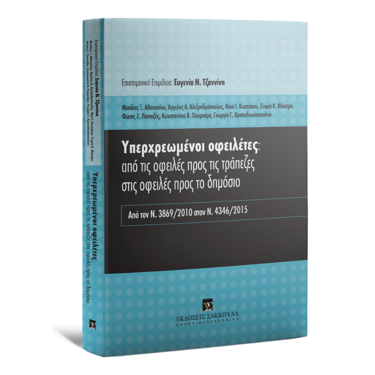 Το βιβλίο αυτό είναι το μοναδικό του οποίου η εξ υπαρχής συγγραφή εκκίνησε εξ ολοκλήρου μετά την ψήφιση των νόμων 4336/2015 και 4346/2015 και δεν αποτελεί απλώς επικαιροποίηση παλαιότερων εκδόσεων. Γραμμένο από νομικούς με πλούσια πρακτική εμπειρία στον τομέα αυτόν, παρουσιάζει θεματικά τις ρυθμίσεις του νόμου 3869/2010 όπως ισχύει από 1.1.2016 ακολουθώντας τα διάφορα στάδια της διαδικασίας από την κατάθεση της αγωγής έως και την απαλλαγή του οφειλέτη. Με πολλές παραπομπές στην πλούσια σχετική νομολογία, παρουσιάζει ταυτόχρονα και τις διάφορες ερμηνευτικές προσεγγίσεις που έχουν διατυπωθεί στα αμφιλεγόμενα σημεία του νόμου.
