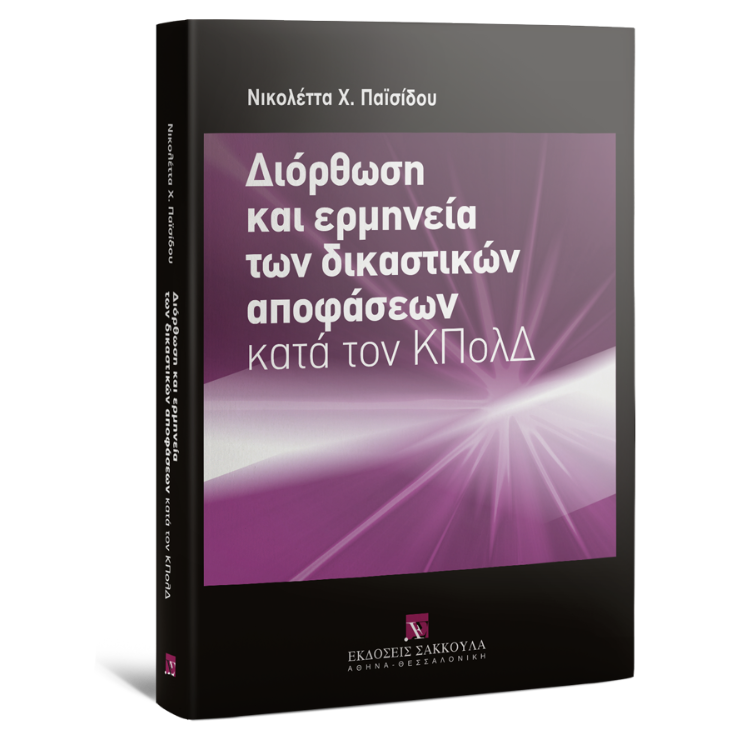 Ν. Παϊσίδου, Διόρθωση και ερμηνεία των δικαστικών αποφάσεων κατά τον ΚΠολΔ, 2010