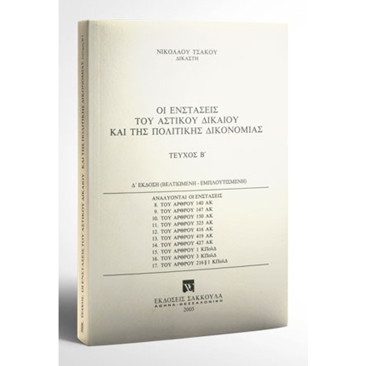 Ν. Τσάκος, Οι ενστάσεις του αστικού δικαίου και της πολιτικής δικονομίας, τόμ. 2, 4η έκδ., 2005