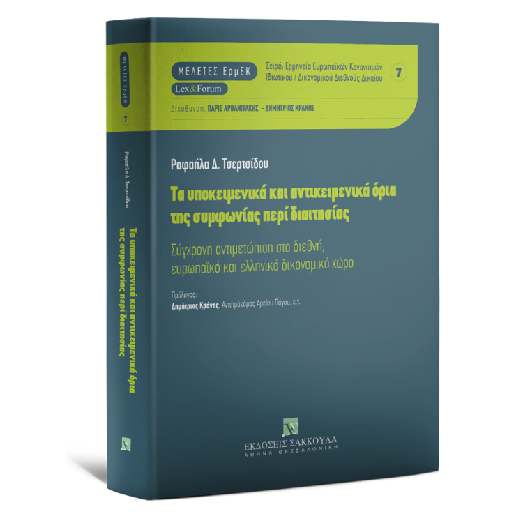 Μέσα από την αξιοποίηση του πλούσιου διεθνούς και ευρωπαϊκού νομολογιακού όγκου και προβάλλοντας τη σημασία των διαφορετικών γνωμών στο πλαίσιο της διαιτησίας, η παρούσα μονογραφία συμπληρώνει ένα κενό στην ελληνική βιβλιογραφία, καθώς αντιμετωπίζει σε βάθος, αλλά και με σύγχρονη ματιά, όλα τα σύνθετα δογματικά και πρακτικά ζητήματα, που ανακύπτουν στο πλαίσιο των υποκειμενικών και αντικειμενικών ορίων της διαιτητικής συμφωνίας.