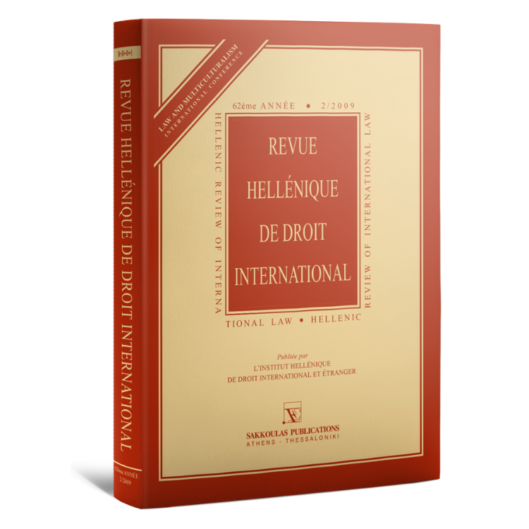 The latest issue of the Revue hellénique de droit international hosts the lectures presented at the international colloquium in celebration of the Hellenic Institute of International & Foreign Law’s 70 years of service (Athens, November 2009). A distinguished group of academics from Europe, the United States and Asia analyze a series of issues on the relationship between law and multiculturalism (the organization of a multicultural society; international transactions; family law; etc). The issue also includes a study evaluating the Greek legal framework for human embryonic stem cell research; translations in French and English of recent amendments to the Greek law on citizenship; tables of international conventions signed by Greece (2008); and a series of book reviews.