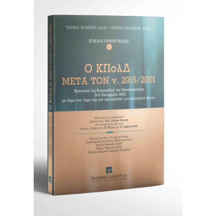 Ο τόμος καλύπτει το σύνολο των αλλαγών του ν. 2915/2001 με εισηγήσεις και παρεμβάσεις έγκριτων νομικών, δικαστικών λειτουργών, δικηγόρων και εκπροσώπων των δύο Νομικών Σχολών της χώρας.
