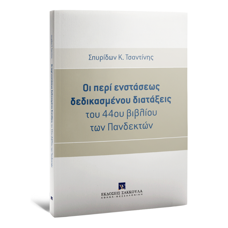 Οι διατάξεις του 44ου Βιβλίου των Πανδεκτών αναφέρονται στην ένσταση δεδικασμένου. Ο Σ. Τσαντίνης παρουσιάζει μια σύγχρονη, κριτική και υπομνηματισμένη μετάφρασή τους, βασισμένη στην μοναδική μέχρι σήμερα μετάφραση στα ελληνικά του Η. Λιακοπούλου. Παρατίθενται επίσης και οι σχετικές διατάξεις των Βασιλικών και συσχετίζονται με τις αυτές των Πανδεκτών.