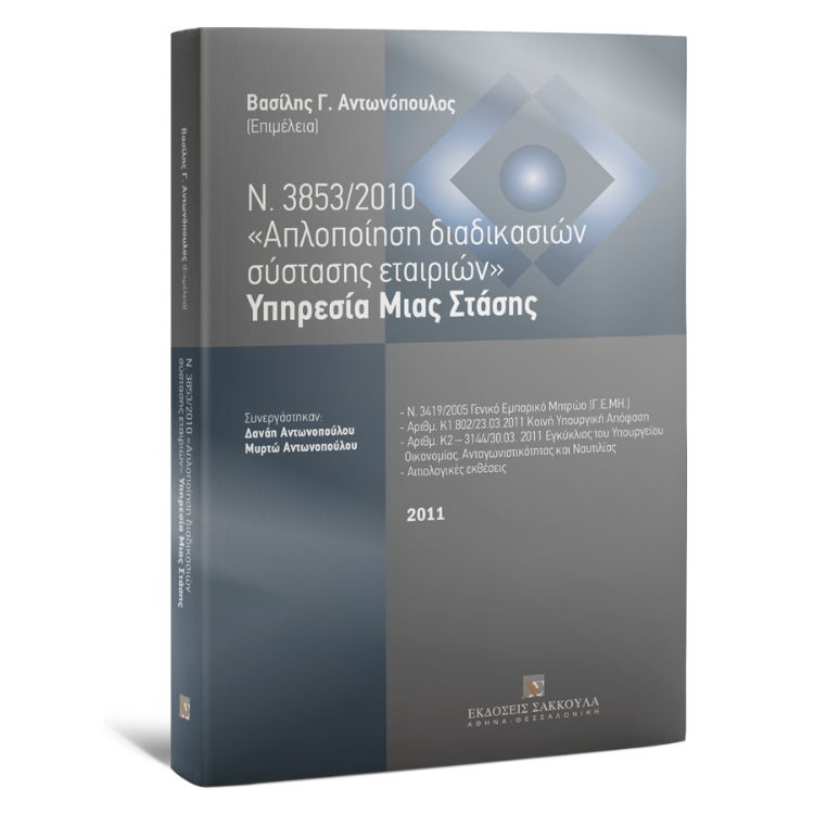 Β. Αντωνόπουλος, Ν. 3853/2010 Απλοποίηση διαδικασιών σύστασης εταιριών - Υπηρεσία Μιας Στάσης, 2011