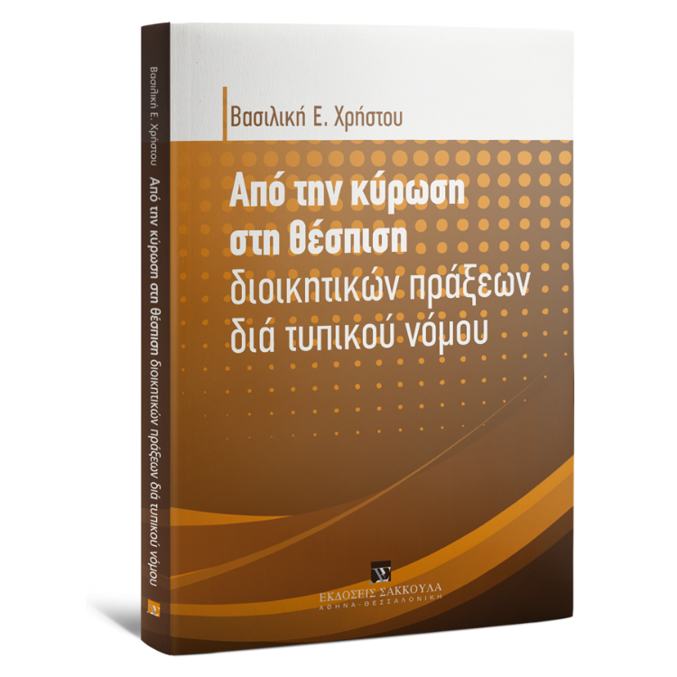 Αντικείμενο της παρούσας μελέτης είναι η κύρωση ατομικών και κανονιστικών διοικητικών πράξεων δια τυπικού νόμου, καθώς και το διάδοχο φαινόμενο, η θέσπιση κατ’ ουσίαν διοικητικών πράξεων δια τυπικού νόμου. Το ζήτημα αυτό αντιμετωπίζεται προεχόντως στη θεσμική του διάσταση, εντασσόμενο στην προβληματική της αρχής της διακρίσεως των εξουσιών.
