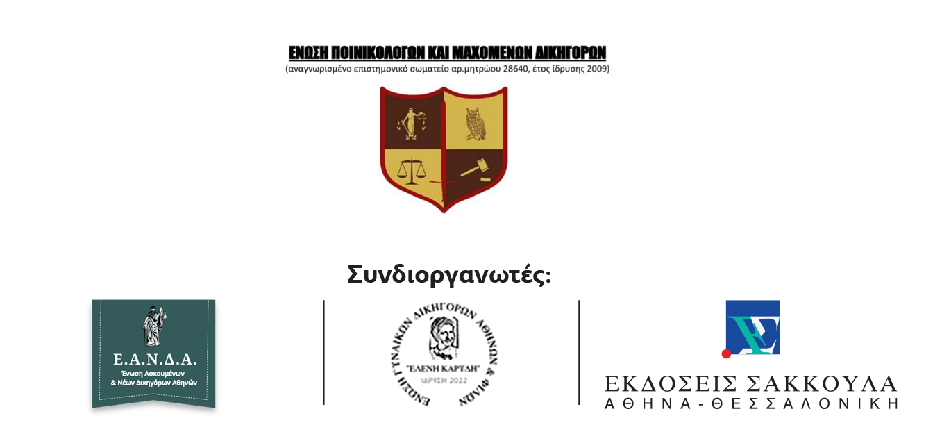 ΤΟ ΣΥΝΕΔΡΙΟ ΘΑ ΜΕΤΑΔΟΘΕΙ ΔΙΑΔΙΚΤΥΑΚΑ ΑΠΟ ΤΟ YOU TUBE & FACEBOOK της Ένωσης Ποινικολόγων και Μαχόμενων Δικηγόρων.